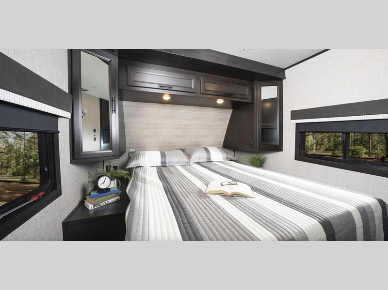 Sleeps 4 Slides 1 Length 30 ft 1 in Ext Width 8 ft 1 in Ext Height 11 ft 8 in Int Height 7 ft 1 in Interior Color Calli Linen Hitch Weight 785 lbs GVWR 9200 lbs Dry Weight 7060 lbs Cargo Capacity 2140 lbs Fresh Water Capacity 52 gals Grey Water Capacity 37 gals Black Water Capacity 37 gals Tire Size ST225/75R15'E Furnace BTU 35000 btu Available Beds Olympic Queen Refrigerator Type 12V Refrigerator Size 10 cu ft Cooktop Burners 3 Shower Size 30" x 48" Number of Awnings 1 LP Tank Capacity 30 lbs Water Heater Type Tankless AC BTU 15000 btu TV Info LR 4K Ultra LED HD Smart TV Awning Info 16' Electric w/Integrated LED Ligths Axle Count 2 Number of LP Tanks 2 Shower Type Standard Electrical Service 50 amp Similar Floorplans