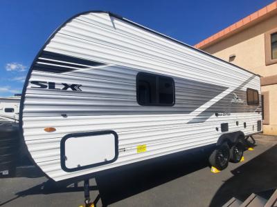 The Jayco Jay Flight SLX travel trailer is quite easy to own because it is lightweight for an easier towing experience. Built on a fully integrated A-frame with galvanized-steel, impact-resistant wheel wells, the Jay Flight SLX has quality at its very foundation. That quality continues on to the electric self-adjusting brakes, easy-lube hubs, Magnum Truss roof system, and LP quick connect. Some of what the mandatory Customer Value Package includes is backup camera prep, Keyed-Alike entry and baggage doors, and an on-demand tankless water heater.